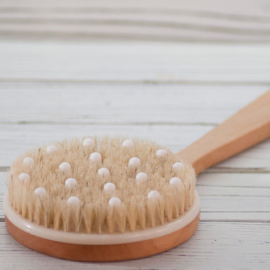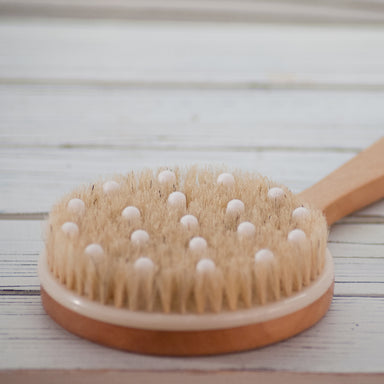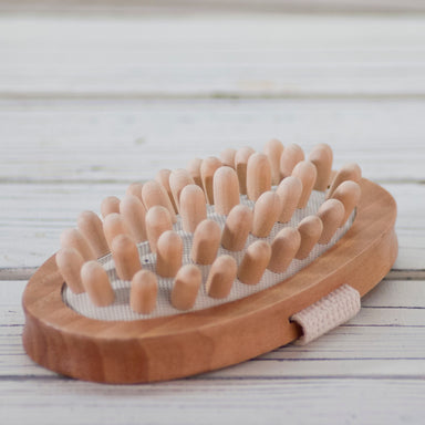 Massager Round Back Brush: Gently massage skin and stimulate circulation. For use with massage oils or scrubs. Round wooden massager with handle wi...