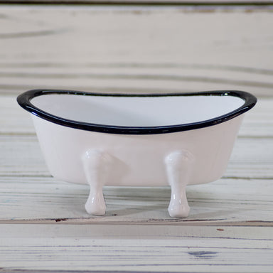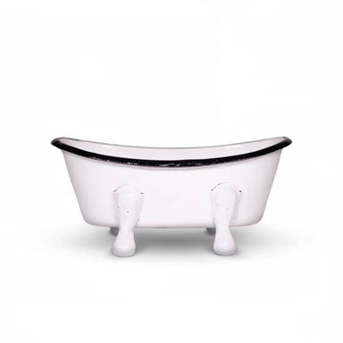 A charming 5.5"L Enameled Metal Bathtub Soap Dish, Distressed white, and various colors. This cute little bathtub with is in the shape of an old-fa...