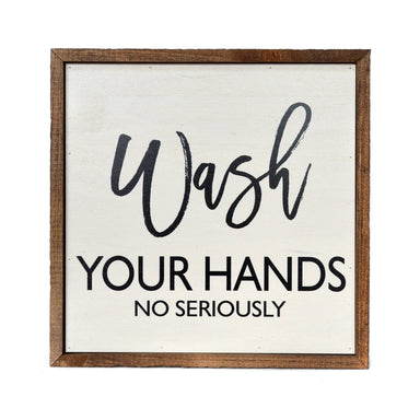Wash Your Hands No Seriously Bathroom wall art. All our signs are build into a wooden box frame with a rustic touch. Signs are hung directly off th...