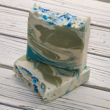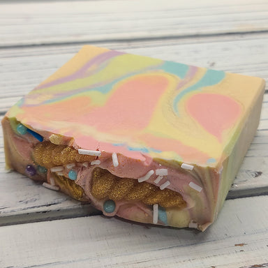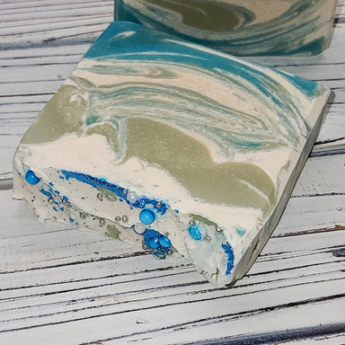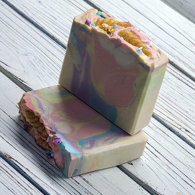Fragrance: Fragrance-free w/ground oatmeal. Design: Natural base topped with a gold mica swirl. Ingredients: Olive Oil, Goat Milk, Coconut Oil, So...